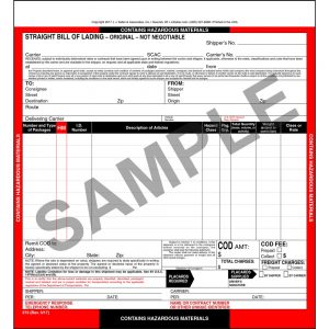 Hazardous Materials Straight Bill of Lading – Snap-Out, 3-Ply w/ Carbon, 8-1/2″ x 11″ (Pkg Qty 250)