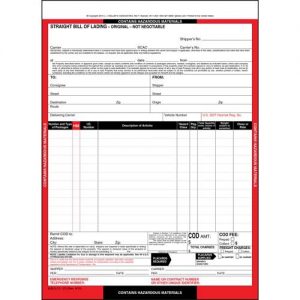 Hazardous Materials Straight Bill of Lading – Snap-Out, 3-Ply w/ Carbon, 8-1/2″ x 11″ (Qty: 250 Units)