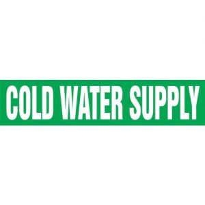 Cold Water Supply Pipe Marker – ASME/ANSI – Green, Self-Stick Vinyl, 2.5″ x 12″ (Part # 52997)