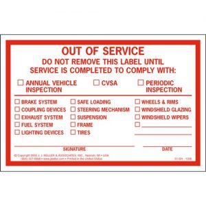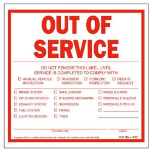 Out of Service Windshield Label – 4″ x 6″ (Part # 1306)