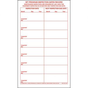 BIT Program Inspection Dates Record Label – Vinyl, 6″ x 10″ (Part # 1360)