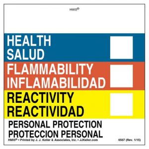Bilingual Original HMIS Labels – Without Chronic Hazards Box – 4″ x 4″ Labels, Vinyl (Part # 6567)