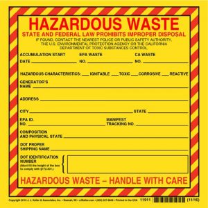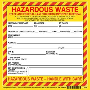 California Hazardous Waste Label – Vinyl, Individual Sheet – Vinyl Label, Sheets (Part # 11911)