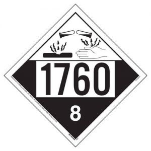 1760 Placard – Class 8 Corrosive – 20 mil Polystyrene, Laminated (Part # 3428)