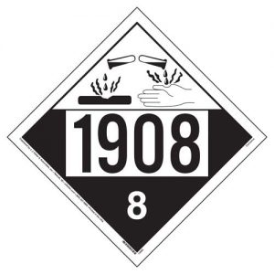 1908 Placard – Class 8 Corrosive – 4 mil Vinyl Permanent Adhesive (Part # 17941)