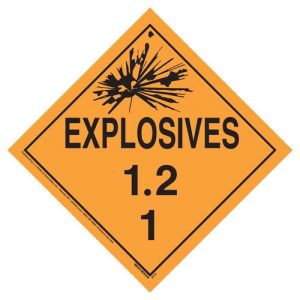 Division 1.2 Explosives Placard – Worded – 4 mil Exterior-Grade Vinyl, Removable Adhesive (Part # 35781)