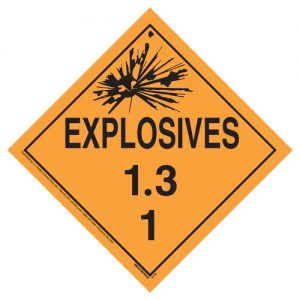 Division 1.3 Explosives Placard – Worded – 4 mil Exterior-Grade Vinyl, Removable Adhesive (Part # 35795)