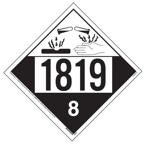 - Corrosive placard measures 10-3/4″ x 10-3/4″