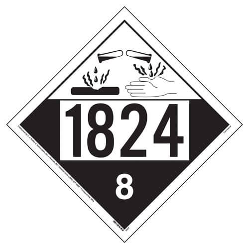 - Pre-numbered with 4-digit identification number (UN 1824), hazard class (8) and DOT-required symbol