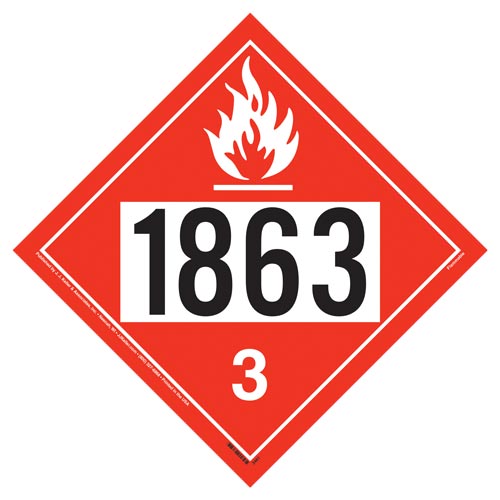 (Part # 50584) Flammable liquid placards display UN 1863, hazard class 3, and meet hazmat placarding requirements.