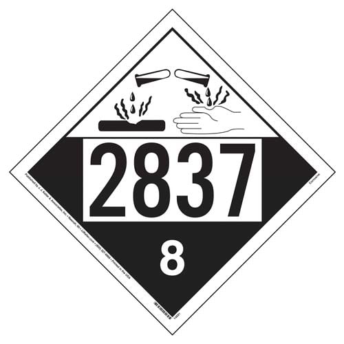 - Pre-numbered with 4-digit identification number (UN 2837), hazard class (8) and DOT-required symbol