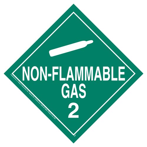 (Part # 50926) Non-flammable gas worded placards display hazard class 2 and meet DOT placarding specifications.