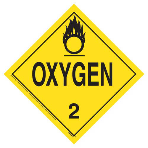 (Part # 317) Oxygen worded placards display hazard class 2 and meet DOT placarding specifications.