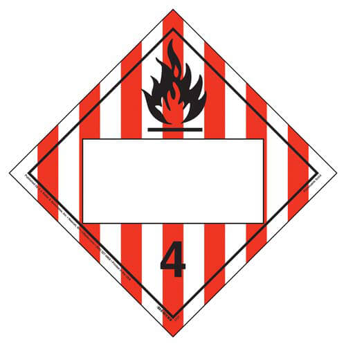 (Part # 2730) Hazmat placards feature blank space for UN number to meet DOT placarding specifications for Class 4 flammable solids.