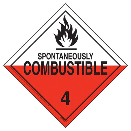 (Part # 39046) Spontaneously combustible worded placards display hazard class 4 and meet DOT placarding specifications.