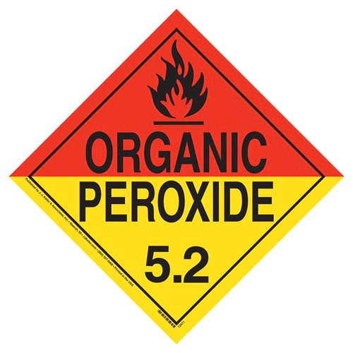 (Part # 12471) Organic peroxide worded placards identify hazard class 5 and meet DOT placarding specifications.
