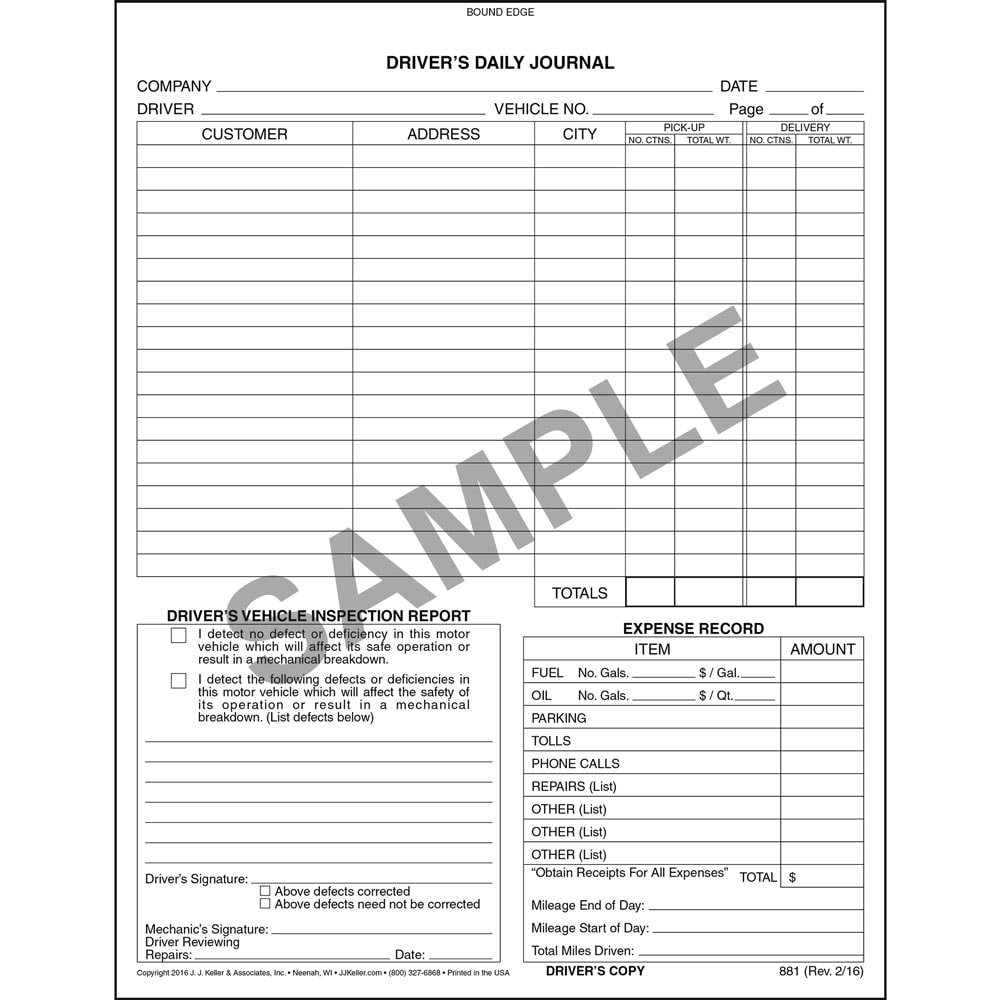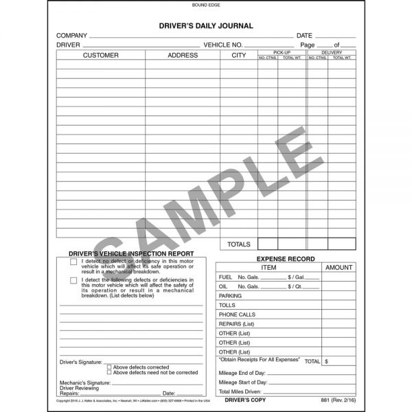 / Driver’s Daily Journal (Qty: 5 Units)