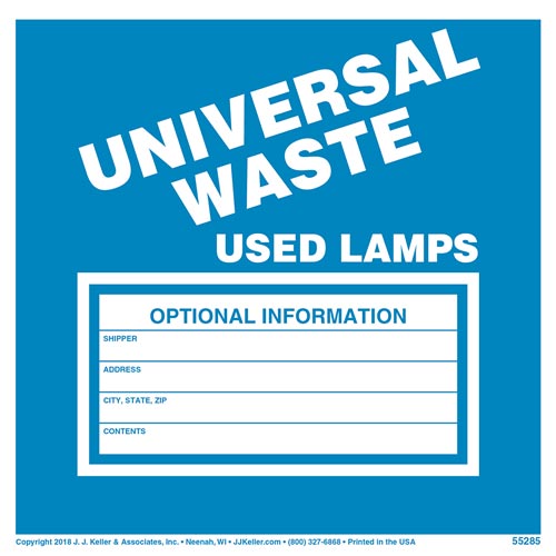 (Part # 55285) Universal waste labels help you comply with DOT regulations.